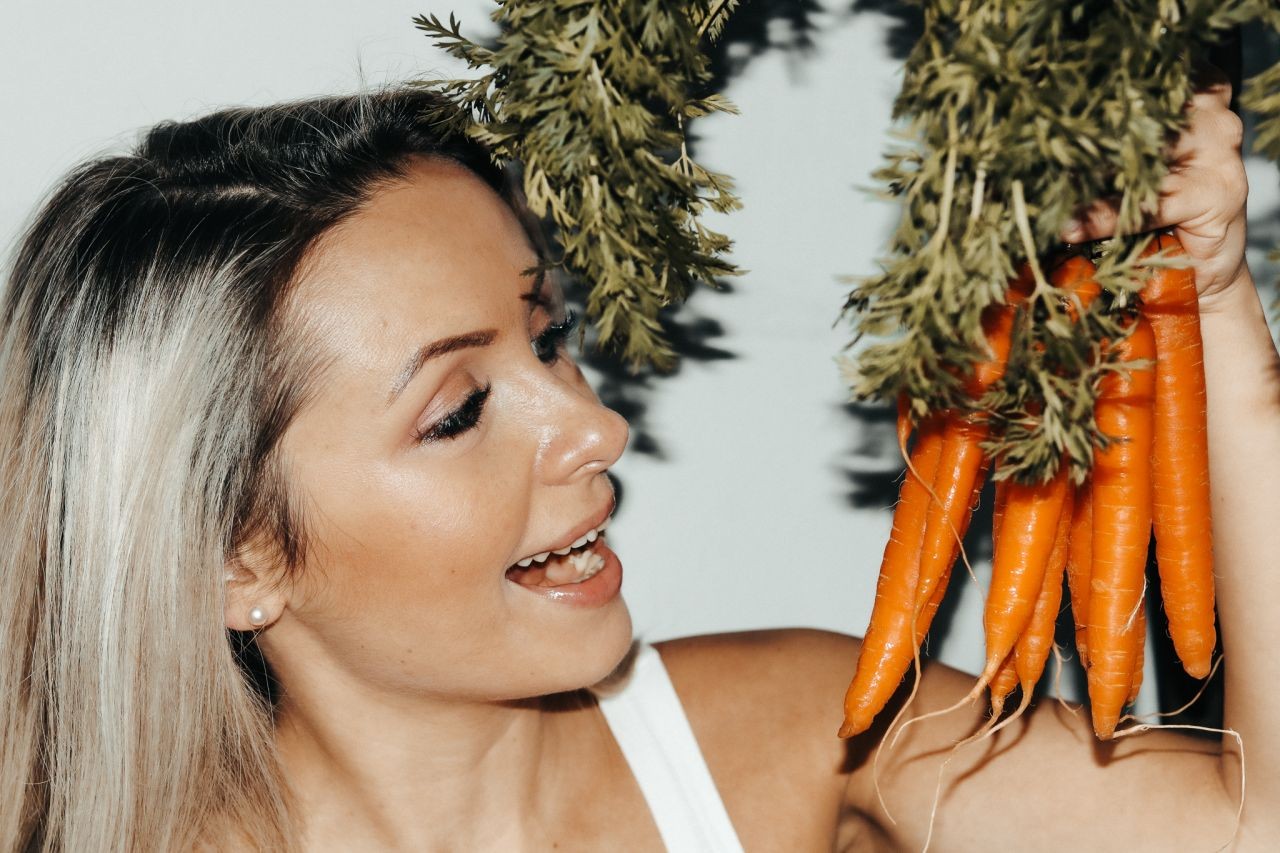 Möhren fördern ein jugendliches Aussehen, glänzendes Haar und glatte Haut. Es ist ein riesiges Lagerhaus von Vitamin A, das wesentlich für unseren Körper und gesundes Wachstum ist. Vitamin A stärkt unsere Immunität und wirkt sich positiv auf den Zustand und die Farbe unserer Haut (glättet Falten und Fältchen) aus. Es ist am besten, es roh in Form eines Salats mit dem Zusatz von Apfel- und Zitronensaft zu essen. Neben großen Mengen an Beta-Carotin ist das Gemüse reich an B-Vitaminen, die den Zustand unseres Nervensystems beruhigen und die Arbeit des Gehirns unterstützen. Es enthält auch Kalzium, Phosphor und Zink, die die Knochen, Zähne, Haare und Nägel stärken und sich positiv auf das Herz und die Nieren auswirken. Außerdem enthalten Möhren viel Magnesium, das die Konzentration verbessert und Kalium gegen Bluthochdruck. Karotten sind ebenfalls reich an Eisen, das notwendig bei der Verteilung von Sauerstoff an alle Zellen des Körpers und Vorbeugung von Anämie ist.