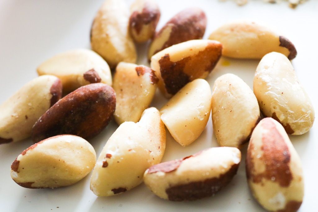Sie sind eine reichliche Quelle von Selen. Es hilft bei der Produktion von Glutathion, einem starken Antioxidans, das freie Radikale neutralisiert und dabei hilft, die Giftstoffe zu entfernen. Zusätzlich gehören Paranüsse zu den wichtigen Lebensmitteln mit entzündungshemmenden Eigenschaften. Sie unterstützen die Zellteilung und helfen, die Mikrodrüse der Haut zu reparieren und verlangsamen den Alterungsprozess. Es reicht schon 2 Nüsse pro Tag zu essen, um den Alterungsprozess zu stoppen bzw. zu verlangsamen. Die naturbelassene Paranüsse von Alesto sind bei Lidl für EUR 2,99 erhältlich.