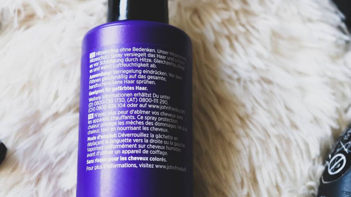 Laut Hersteller das Hitzeschutzspray von John Frieda schützt vor Hitzestyling und pflegt das Haar gleichzeitig. Die Haare werden versiegelt und damit vor den Schädigungen durch Hitze geschützt. Das Produkt ist auch für gefärbtes Haar geeignet.