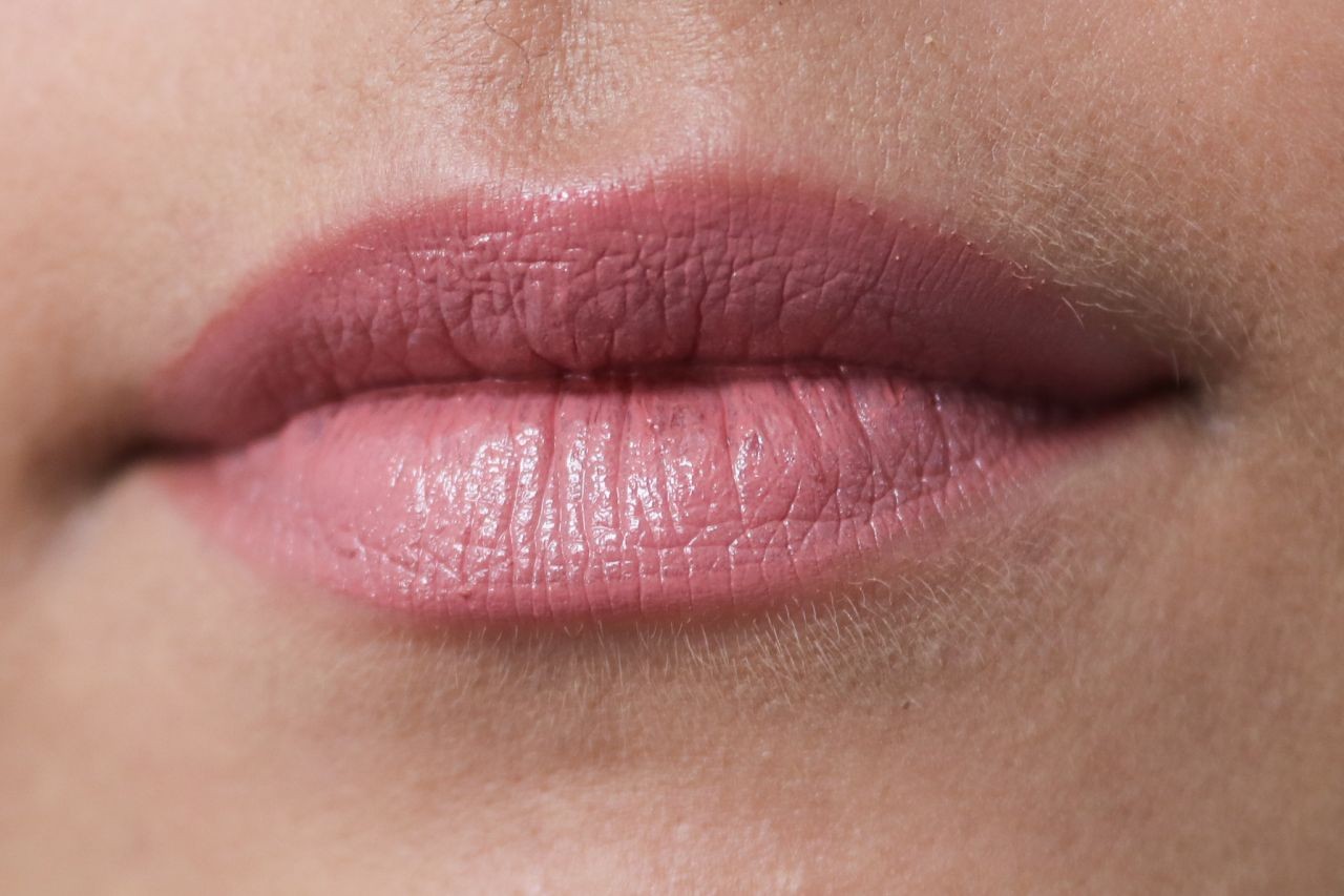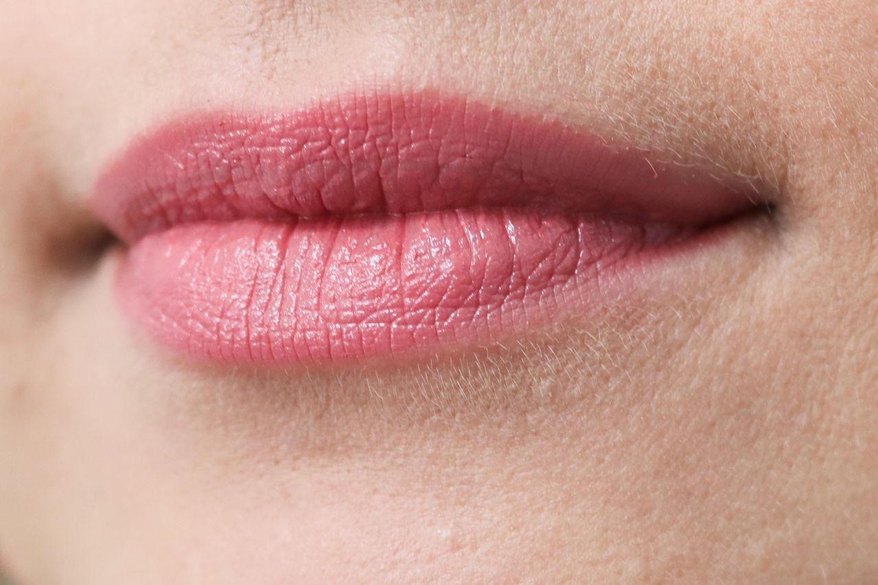 Es ist eine helle, cremige und leicht pudrige Rosa. Die Farbe mag ich sehr. Zwischendurch mische ich den Lippenstift mit einer dunkleren Farbe.