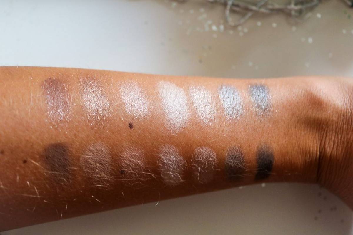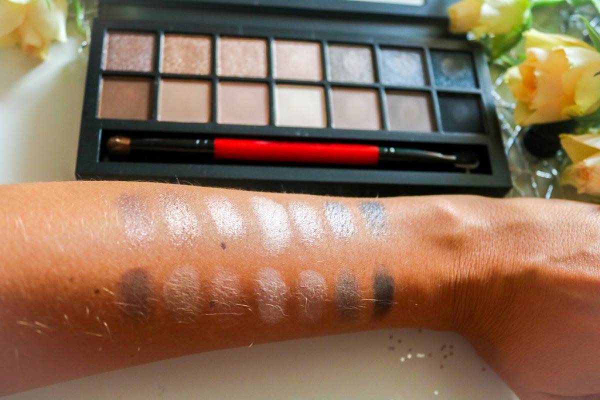 Die dunklen Farben sind sehr gut pigmentiert. Ganz leicht lässt sich ein schöner Lidstrich machen. Matt- und Glanzfarben sind cremig, lassen sich fabelhaft auftragen und verblenden, harmonieren perfekt miteinander, verblassen und bröseln nicht. Die glitzernden Farben decken gut aber nicht sehr gut. Sie verleihen eine Art von leichtem Schimmer, was ich sehr schön finde. Also wenn jemand ein starkes, dramatisches und ausdrucksvolles Abend Make-up mit den Glitzerfarben machen möchte, würde ich dafür eine andere Palette nehmen. Ich mag ein dezent geschminktes Auge, das durch den Glanz etwas aufgepeppt wird. Für einen doch etwas stärkeren Effekt habe ich einen Trick - bevor ich die Lidschatten auftrage, feuchte ich erst den Pinsel an. Die Farben sind dann ausdrucksvoller. Im großen und ganzen finde ich alle Farben ziemlich gut pigmentiert. Sie können ein wunderbar matten Tages-Make-up kreieren, sowie mit einer leicht schimmernden Note abschließen. Außerdem zaubern Sie mit den Lidschatten auch ein wunderbares Smokey-Eye Abend-Make-up in mehreren Varianten. Die Haltbarkeit ist ebenfalls sehr gut. Allerdings benutze ich einen Primer, der dabei war. Ohne war ich aber auch zufrieden.