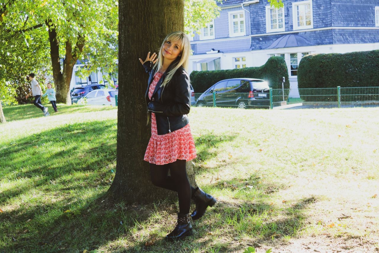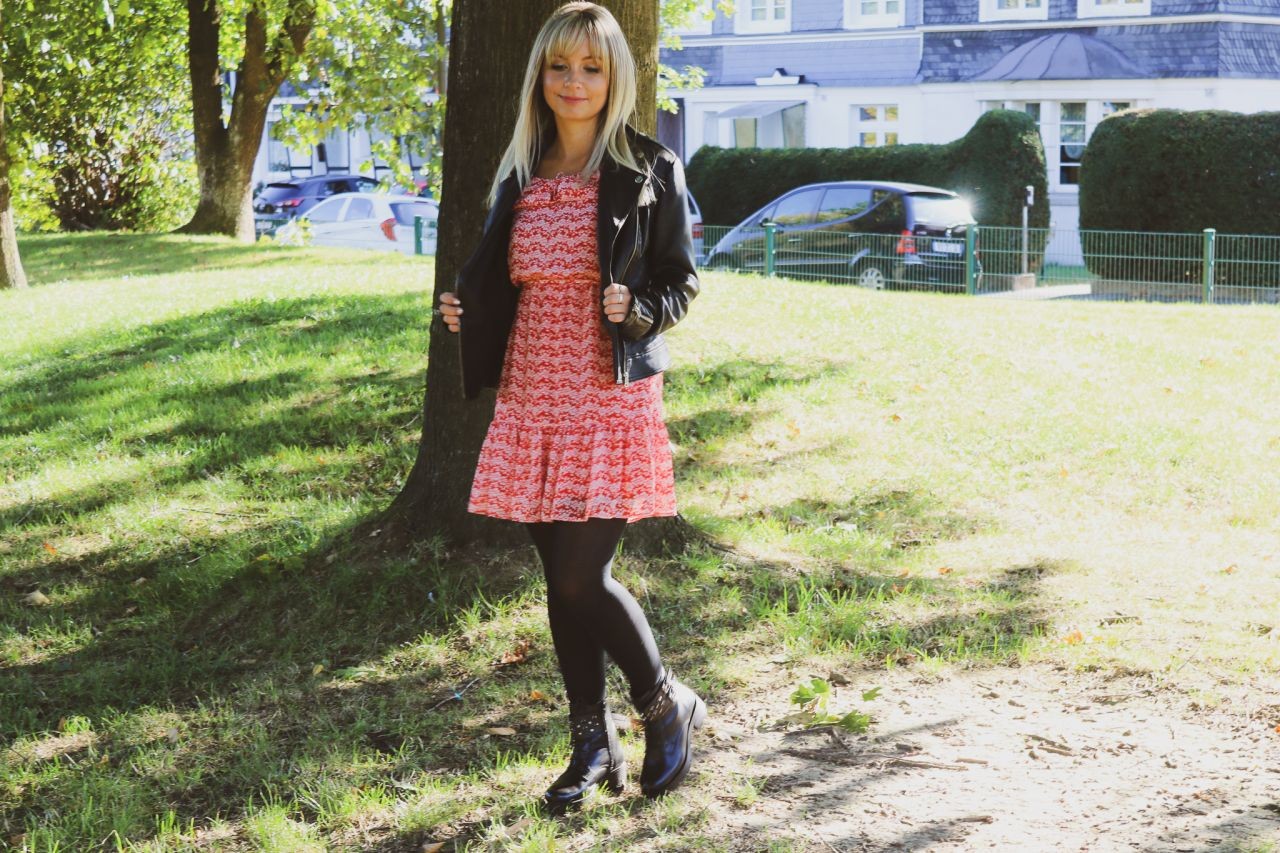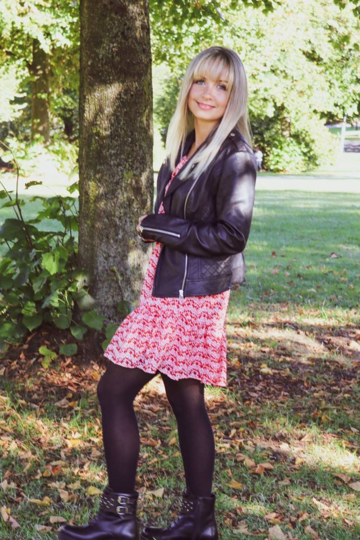 Die Ankunft des Herbstes bedeutet nicht, dass Sie sofort Ihre gesamte Sommergarderobe loswerden und sie durch dicke Pullover ersetzen müssen. Alles, was Sie tun müssen, ist eine Idee, wie Sie die Kleidung verwenden, wenn die Temperatur sinkt. Mein Vorschlag bezieht sich auf ein leichtes langärmliges Sommerkleid. Solcher bequeme Garderobenteil ist definitiv kein Kleidungsstück, das Sie im Herbst nicht tragen können! Wenn es draußen kälter wird ziehen Sie eine Lederjacke dazu an und kreieren einen lässigen Look. Perfekt eignen sich dazu Biker Boots. Zusammen mit der Lederjacke schaffen Sie anstatt einen süßen einen rockigen Style.