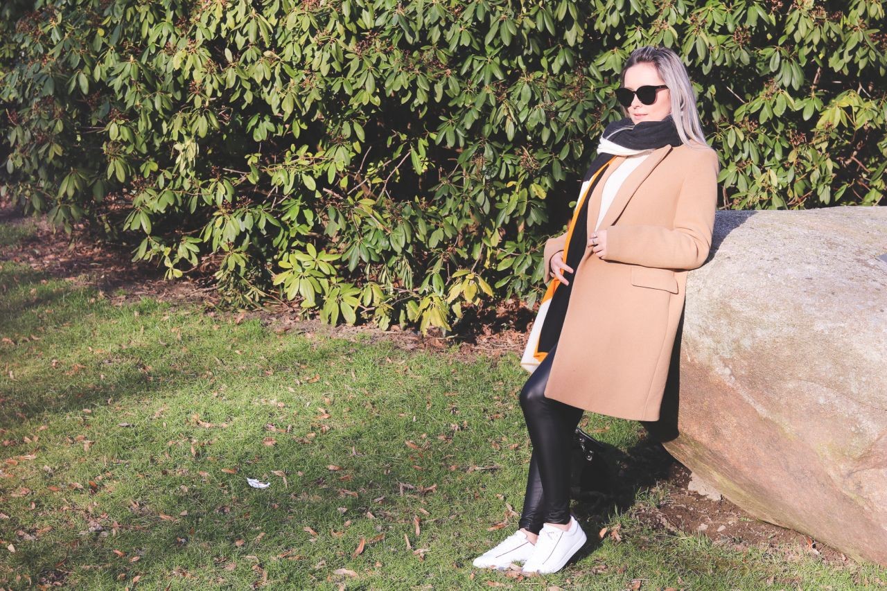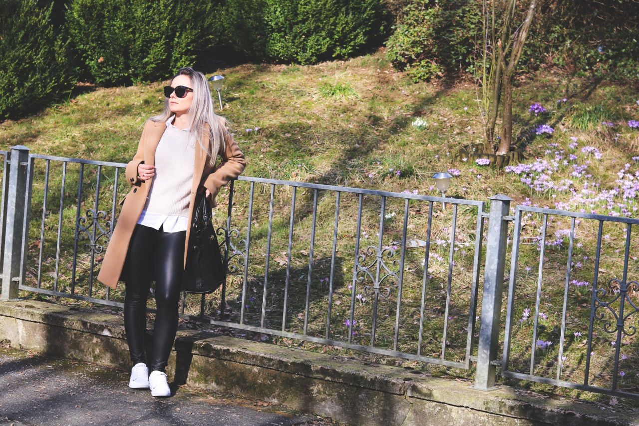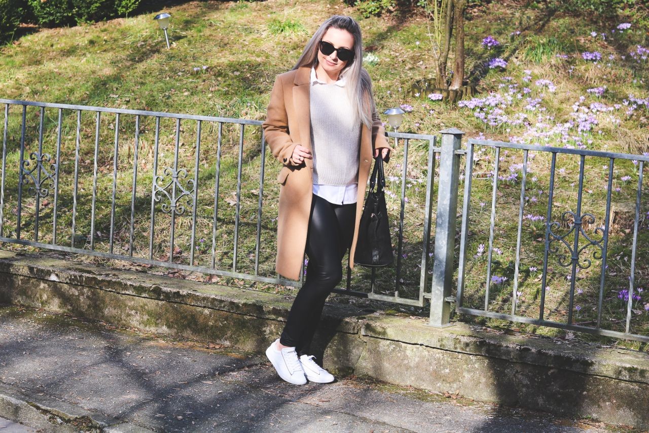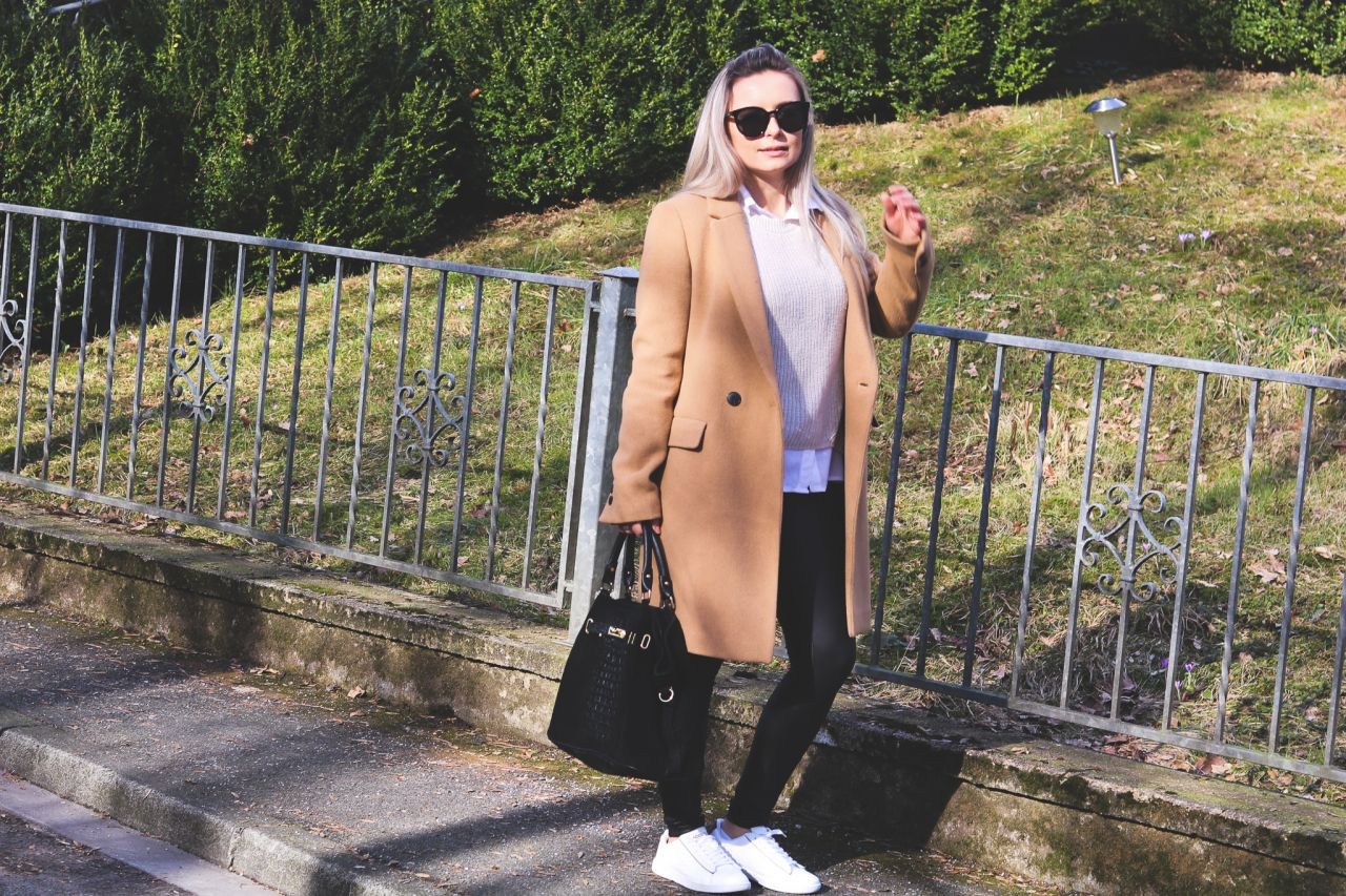Die Hauptrolle bei dem Outfit spielt der klassische Caramel-Mantel, der perfekt für jetzige Wetterlage d.h. Übergang zwischen Winter und Frühling geeignet ist. Ich bin noch vorsichtig, deswegen trage ich dazu einen gut zu dem Outfit passenden Schal in Schwarz, Weiß und Caramel. Den Mantel trage ich sehr gerne, da es auf verschiedener Weise kombiniert werden kann - sowohl schick als auch sportlich.
