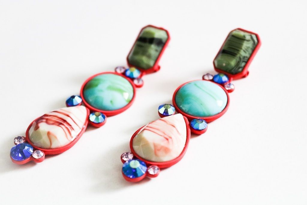 Durch die hängende Form, würde ich die Ohrringe mit möglichst offenem Schulter tragen. So werden sie richtig ins Szene gesetzt und verlängern wir damit unseren Hals. Da der Ohrenschmuck so farbenfroh ist, können wir die Klamotten auf verschieden Weise kombinieren. Ich könnte mir ein weißes oder blaues Sommerkleid gut vorstellen. Das Gute bei dem Ohrringen ist, dass wir sie sowohl schick als auch relativ sportlich (aber eher casual) tragen können.
