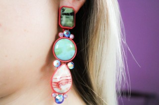 Der Grund, wieso ich genau diese Ohrringe gekauft habe, war die Verbindung der Töne Türkis, Beige und Rot. Die fröhlichen Ohrringe passen perfekt zu den warmen Jahreszeiten und versüßen den Sommer-Look. Die blauen Steinchen, Form und Farben machen sie zu dem richtigen Eyecatcher.