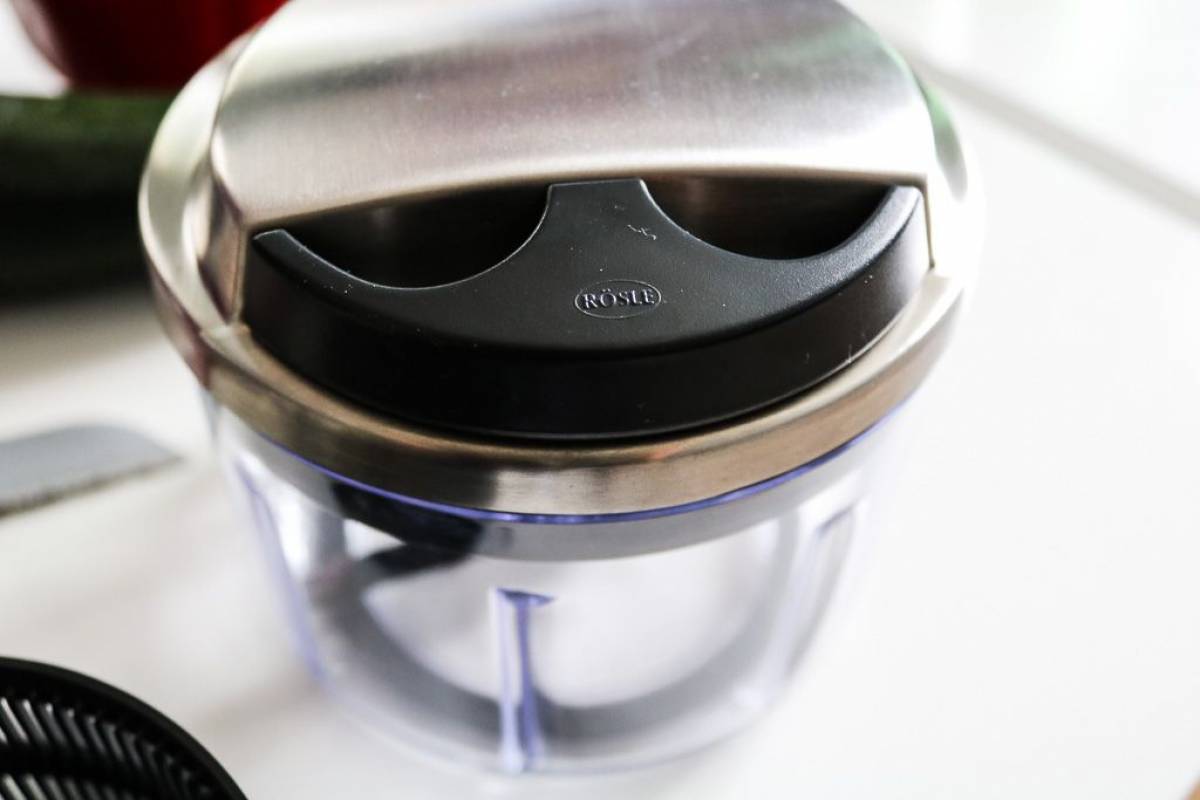 Was mir auch besonders gut gefällt ist die Verarbeitung des Multischneiders - er macht einen hochwertigen Eindruck. Der Behälter ist aus solidem Kunststoff, der Deckel und die Klingen aus Edelstahl. Durch die Rutschsicherung haftet der Behälter gut an die Arbeitsplatte. Die Klingen sind sehr scharf, deswegen soll man aufpassen, sich nicht zu schneiden. Die Kunststoffhülle, die nach dem Gebrauch raufgesetzt werden, verringern das Verletzungsrisiko.