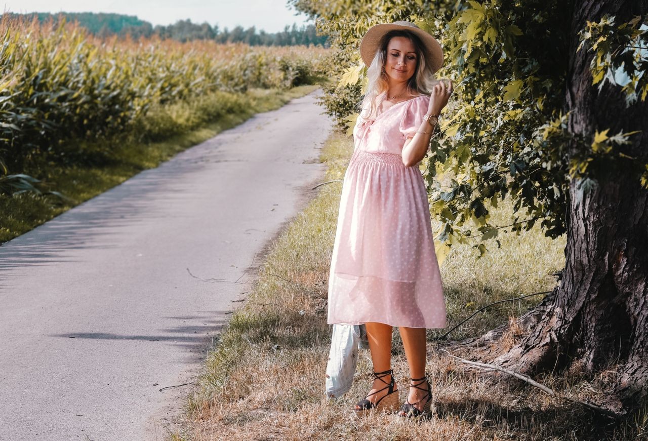 Als ich das rosa Midi-Kleid gesehen habe, habe ich mich sofort verliebt. Was für ein süßer Teil! Es stand fest, dass ich es haben muss. Für lediglich 20€ (Originalpreis 50€) war das Kleidchen meins :).