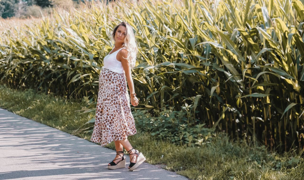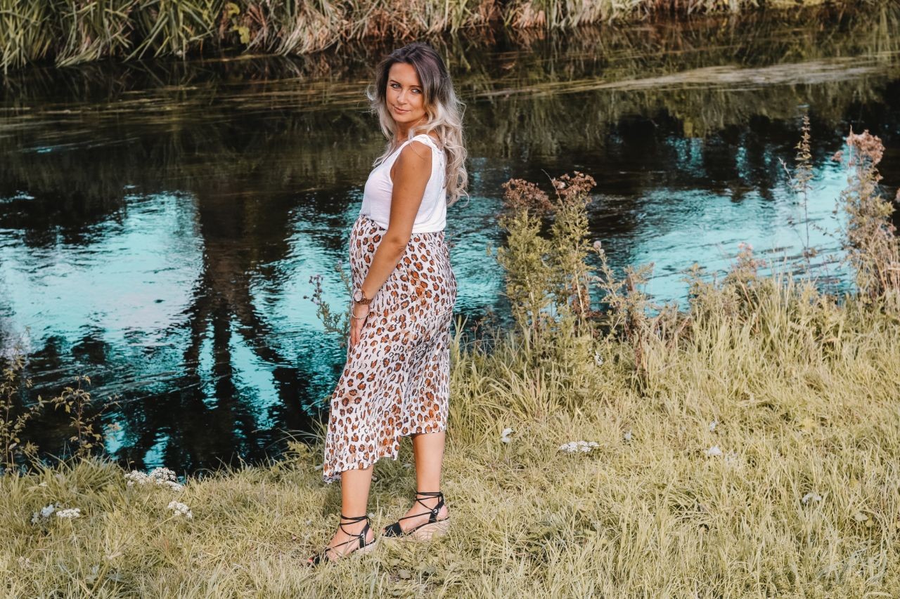 Zu meinem Rock im Leopardenlook trage ich ein lockeres und einfaches Shirt ohne Ärmel. Die schwarzen Sandalen sind auch bei dem Style ein Volltreffer. Ich freue mich schon den Rock im Herbst mit leichten Blusen oder eventuell einem rockigen Oberteil und Sneakers zu kombinieren. Die Möglichkeiten sind unzählig. Es hat sich gelohnt die 15€ (Originalpreis 30€) auszugeben.