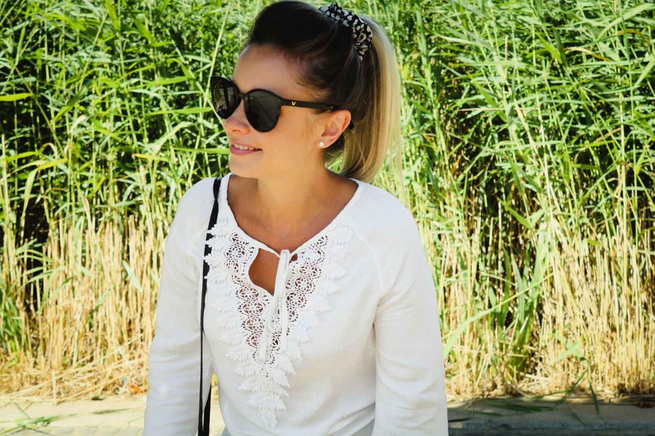 Die Culotte-Hose, die ich auf dem Bild trage, habe ich schon seit der letzten Saison und so wie es aussieht, ist das Exemplar auch dieses Jahr sehr im Trend. Aufgrund von elastischem Stoff und Überbauchbund eignet sie sich perfekt auch für die Schwangerschaft. Wegen vielen Kombinationsmöglichkeiten und großem Komfort in der heißen Jahreszeit, kommt dieser Garderobenteil momentan sehr oft zum Einsatz. Die Hose zählt zu wenigen in meinem Schrank, die ich jetzt tragen kann. Im Sommer kann ich noch viele Kleider anziehen, jedoch im Herbst und Winter wird es schon schwieriger und für meine Culottes wird es schon zu kalt sein. Deswegen denke ich, dass ich nicht drum herum kommen und ich mir Umstandshose anschaffen werde.