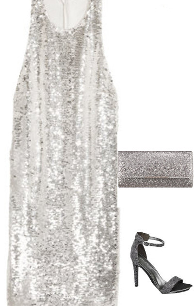 Der erste Vorschlag ist ein schönes Mini-Paillettenkleid im Silber. Das angepasste Oberteil zeigt die Arme und betont sie. Das Kleid ist für selbstbewusste und mutige Frauen, die an diesem Abend gerne auffallen möchten. Bei dieser Kreation konzentrieren wir uns auf den gesamten Look - Sandalen und Clutch in der Farbe des Kleides. Dieses Styling wird sicherlich nicht nur bei Männer, sondern auch bei Frauen Aufmerksamkeit erregen.