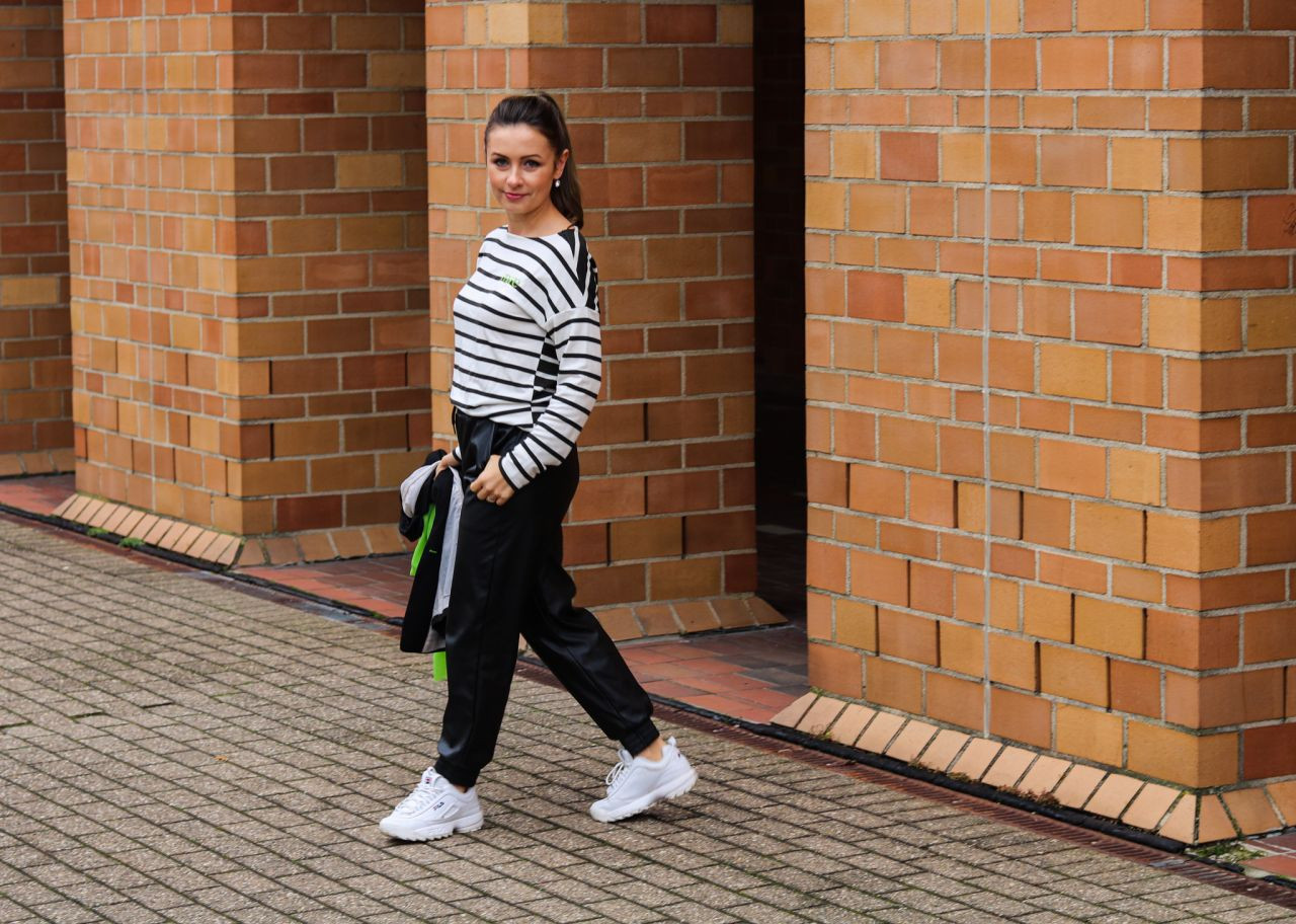Die Möglichekiten wie wir so ein Streifenshirt kombinieren sind sehr vielfältig. Von Jeans, Jogginghosen, Röcken oder bis sogar Latzhosen - aus all den Kleidungsstücken können wir aufregende und originelle Street Style Looks kreieren. Für mein Outfit ist schwarze 3/4 Leder-Jogginghose die perfekte Wahl. Die Hose verbindet einen Hauch Eleganz, aber auch eine gute Portion Tragekomfort und Still miteinander. Solche glänzende Hose mit einem legeren Streifenshirt lässt sich sehr gut zu einem coolen und lockeren Street Look stylen.